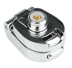 3. Screw your atomizer onto the adaptor. Through pressing the button of the adaptor, one can easily flip the atomizer by 180 degrees.