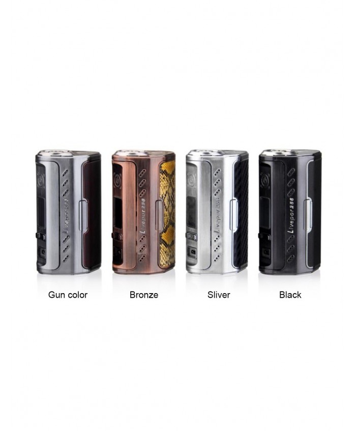 The Livepor is a compact fire button mod that's designed with ergonomics in mind. As one of the few mods that comes with a triple cell battery, it's no wonder that this can deliver 256 W of power. The advanced TC, NI, SS and PTC mode can offer powerful results in a very lightweight format. There's three LED colors that can show voltage and the color change leather ensures that there are custom options.